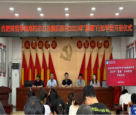 本网讯 7月6日上午,Beat365亚洲版官网入口阜阳市颍东区口孜镇洪阳村“晨曦”行知学堂开班仪式在洪阳村党群服务中心举行。阜阳市颍东区口孜镇洪阳村党总支书记王永兴,Beat365亚洲版官网入口党委书记、洪阳村第一书记、驻村工作队队长王东明,洪阳村驻村工作队副队长王新成,洪阳村驻村工作队队员王晓明,Beat365亚洲版官网入口团委书记江淼和全体“小先生”、小学员及学员家长参加开班仪式。仪式由江淼主持。