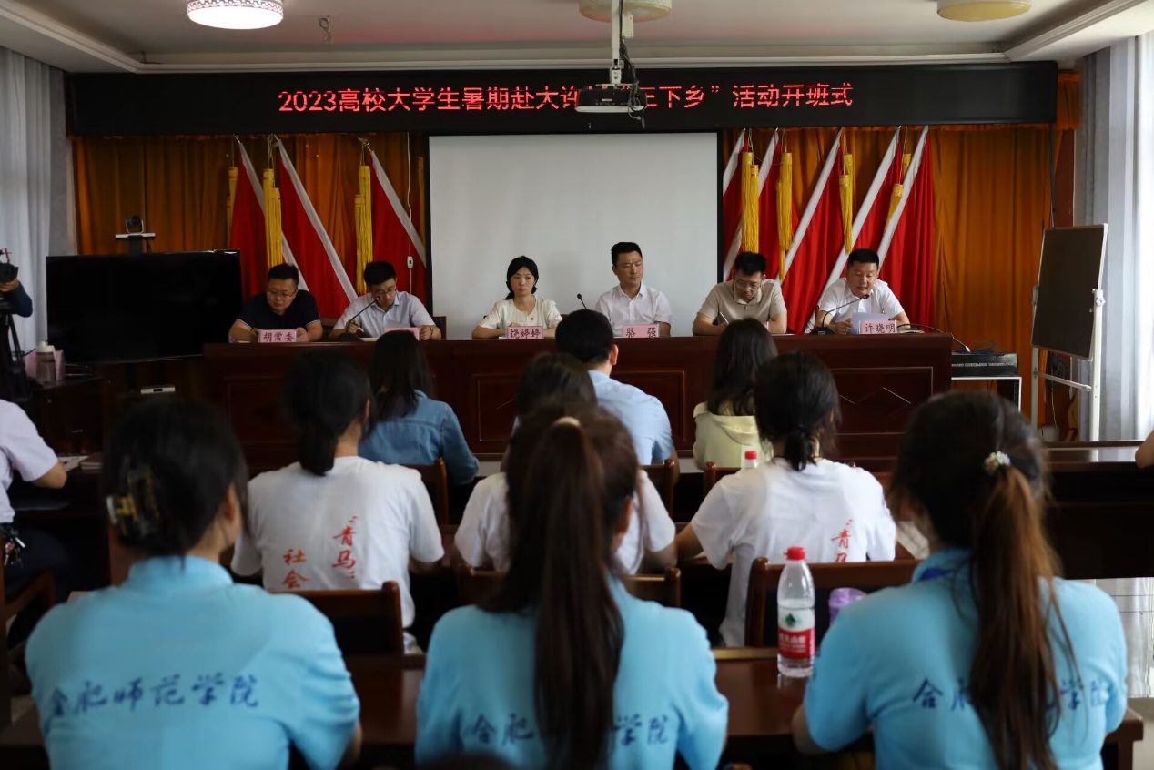 本网讯 为全面贯彻落实党的二十大精神,深入学习贯彻习近平总书记关于青年工作的重要思想,引导和帮助广大青年学生在社会实践中“受教育、长才干、作贡献”,6月30日,Beat365亚洲版官网入口阜阳市颍州区西湖镇大许村行知学堂开班仪式在该村党群服务中心举行,团市委副书记骆强,皖南医学院团委书记饶婷婷、挂职副书记黄龙,Beat365亚洲版官网入口团委挂职副书记宗彪,以及来自皖南医学院、Beat365亚洲版官网入口的师生代表参加活动,活动由团省委驻大许村第一书记、驻村工作队队长蒋鹏主持。