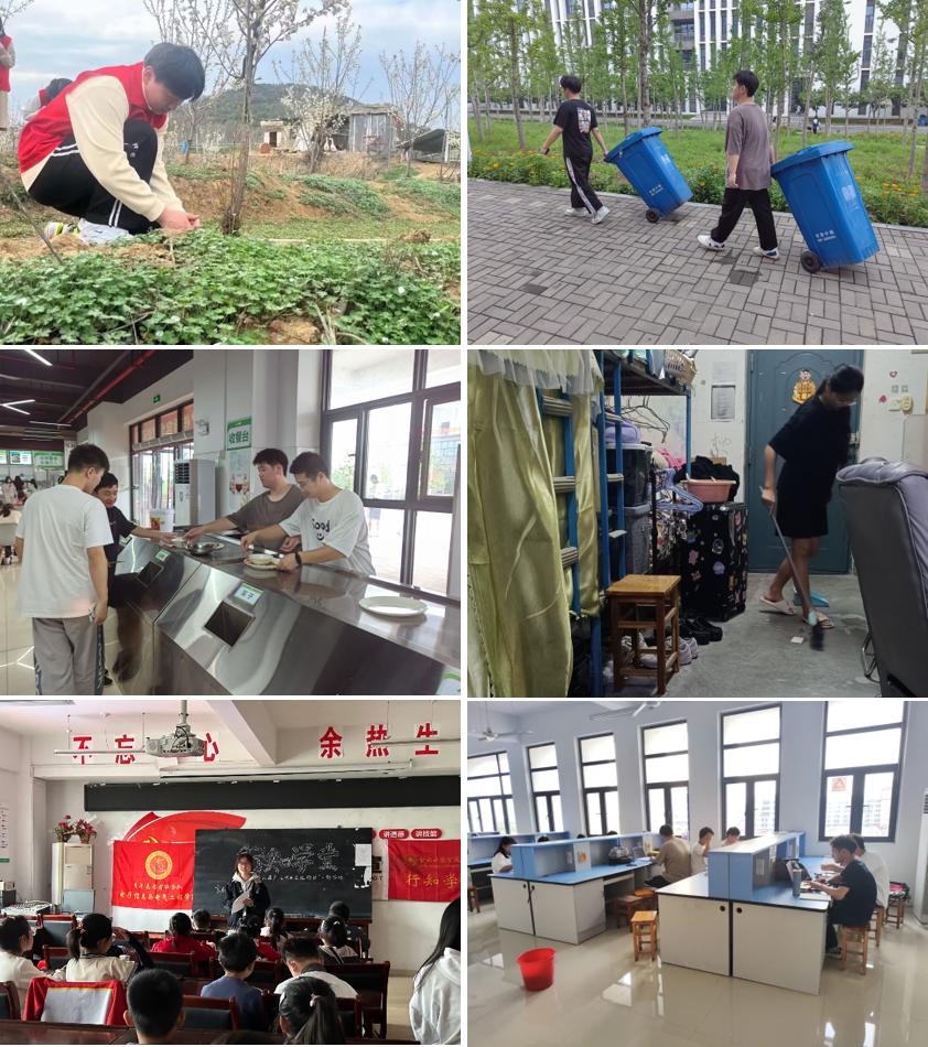 突出实践,知行合一。创新方式方法,组织学生积极参加校园卫生保洁、食堂劳动、教学辅助等劳动实践活动,使学生切身体会到劳动成果来之不易。融合校园管理,组织学生分批参与校园绿化养护,使学生在动手实践、出力流汗中接受锻炼、磨练意志,种好校园劳动责任田。加强劳动教育阵地建设和平台搭建,将劳动教育与生活技能、志愿公益、社会实践、科技创新等有机结合。引导学生参加校外各类公益劳动,以黄麓镇行知学堂为契机,在志愿服务的过程中落实劳动育人。依托学院“双创”育人资源,以学科竞赛、科创社团、开放式实验室等为抓手,积极组织参加“互联网+”大学生创新创业大赛、挑战杯、各类专业比赛等,着力构建创造性劳动育人体系,打造校外劳动大课堂。