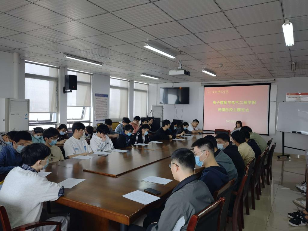 此外,学院还结合学校要求,主动下沉两级落实“班干部—寝室长”疫情防控包保责任制,对于全院学生动向进行动态掌握,实行每日打卡汇报制度,每天确认每位学生的健康情况、学生动态、所在位置,并及时做好疫情知识普及。辅导员们充分发挥党员先锋模范作用,通过线上线下主题班会、今日校园、qq、微信、电话等多种方式引导教育学生正确对待疫情,加强学生的心理疏导和自我防护,从而确保疫情防控工作始终抓严抓细抓实。(电子信息与电气工程学院党委:周玉)
