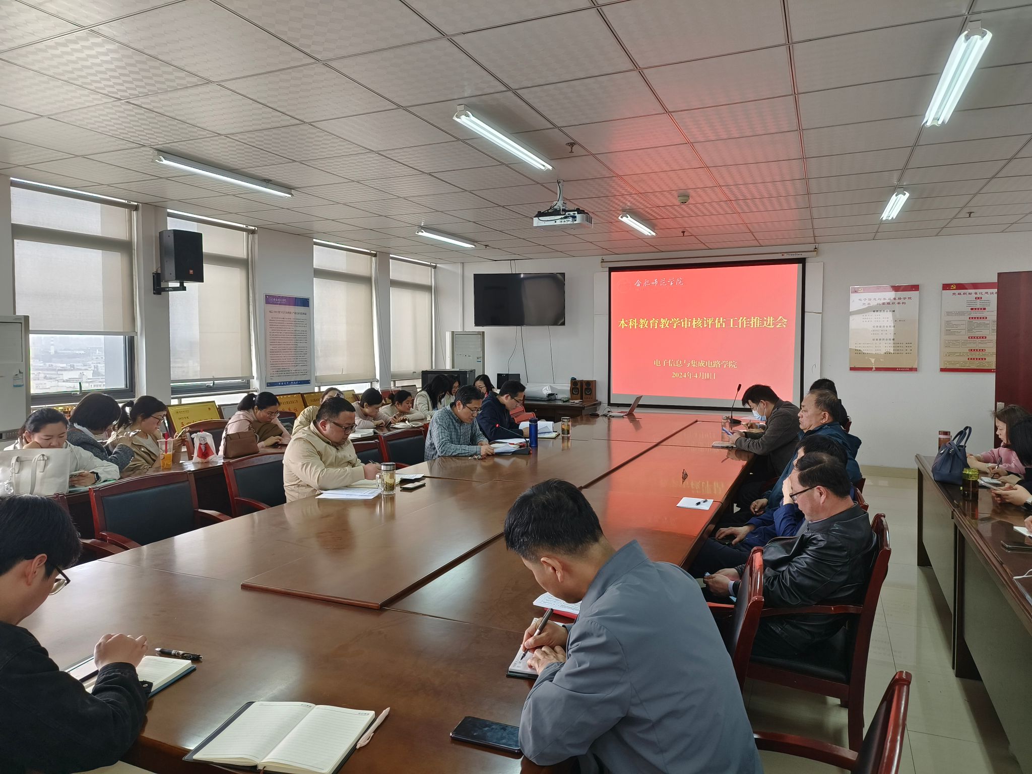 本网讯 4月10日下午,Beat365亚洲版官网入口在行知楼1210会议室召开本科教育教学审核评估工作推进会,学院党政班子成员、系部主任、党支部书记以及全体教职工参加会议,会议由党委副书记、院长张忠祥主持。