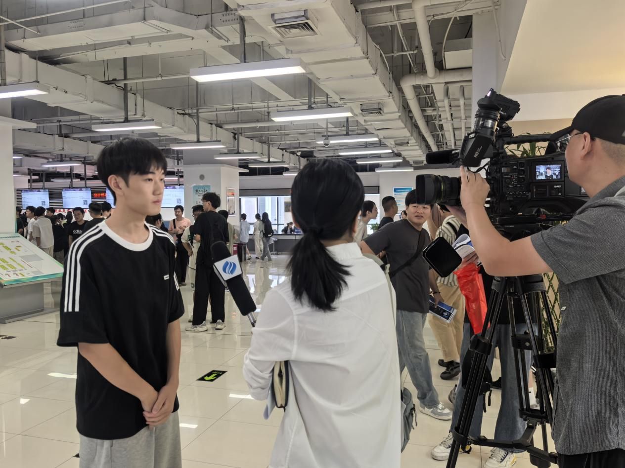 为确保毕业生安全到达现场,早上,学校就业创业工作处安排了“爱心就业专车”,电院带队老师与学生一起乘车到达合肥市人力资源市场。对接会现场气氛热烈,电院学子们积极与企业代表交流,了解企业的招聘需求和岗位信息,展示自己的优势和能力,赢得了企业的青睐和认可。在现场,合肥市广播电视台记者还对学院2021级电子信息工程2班学生周逸凡进行了专访。