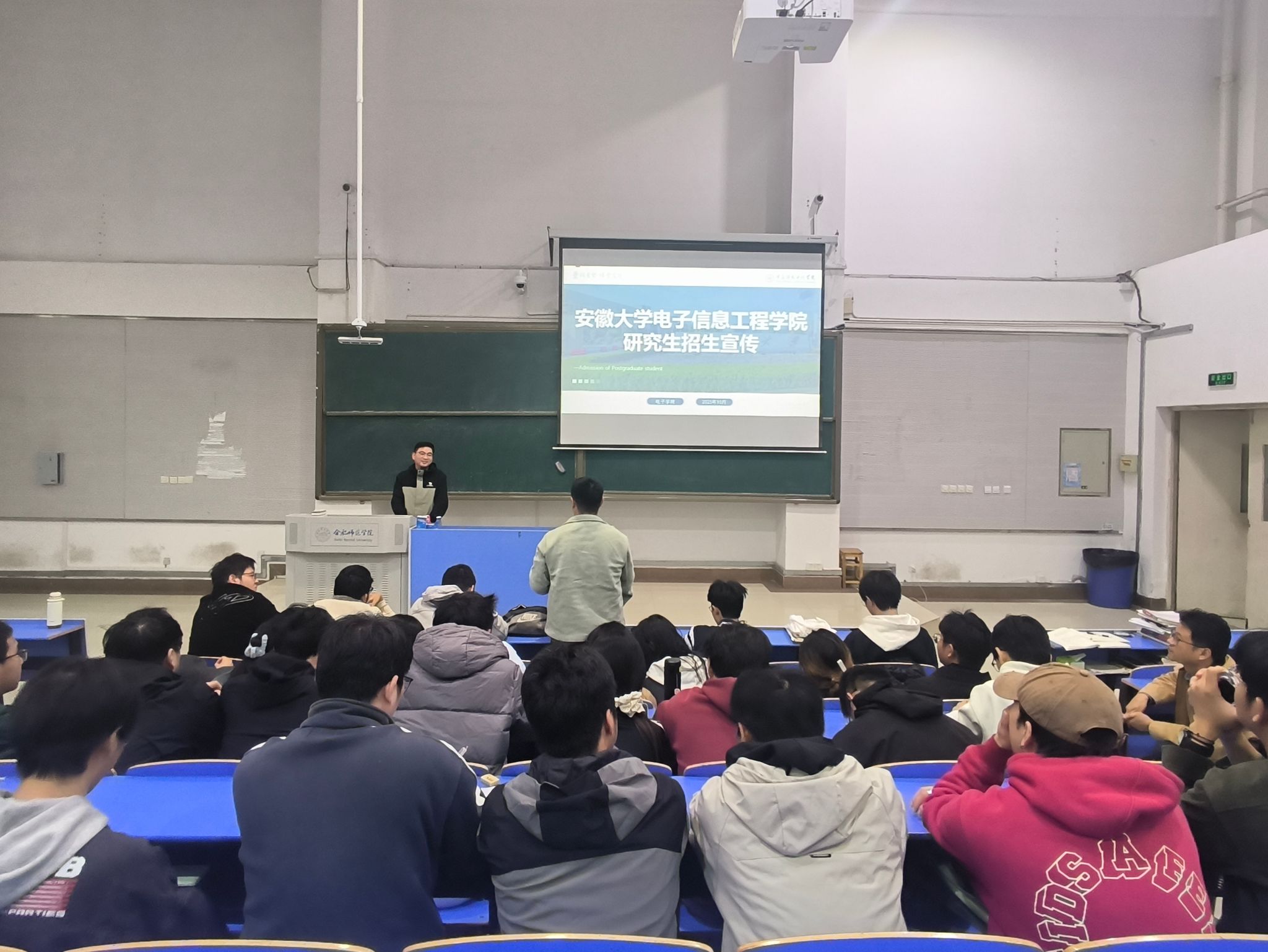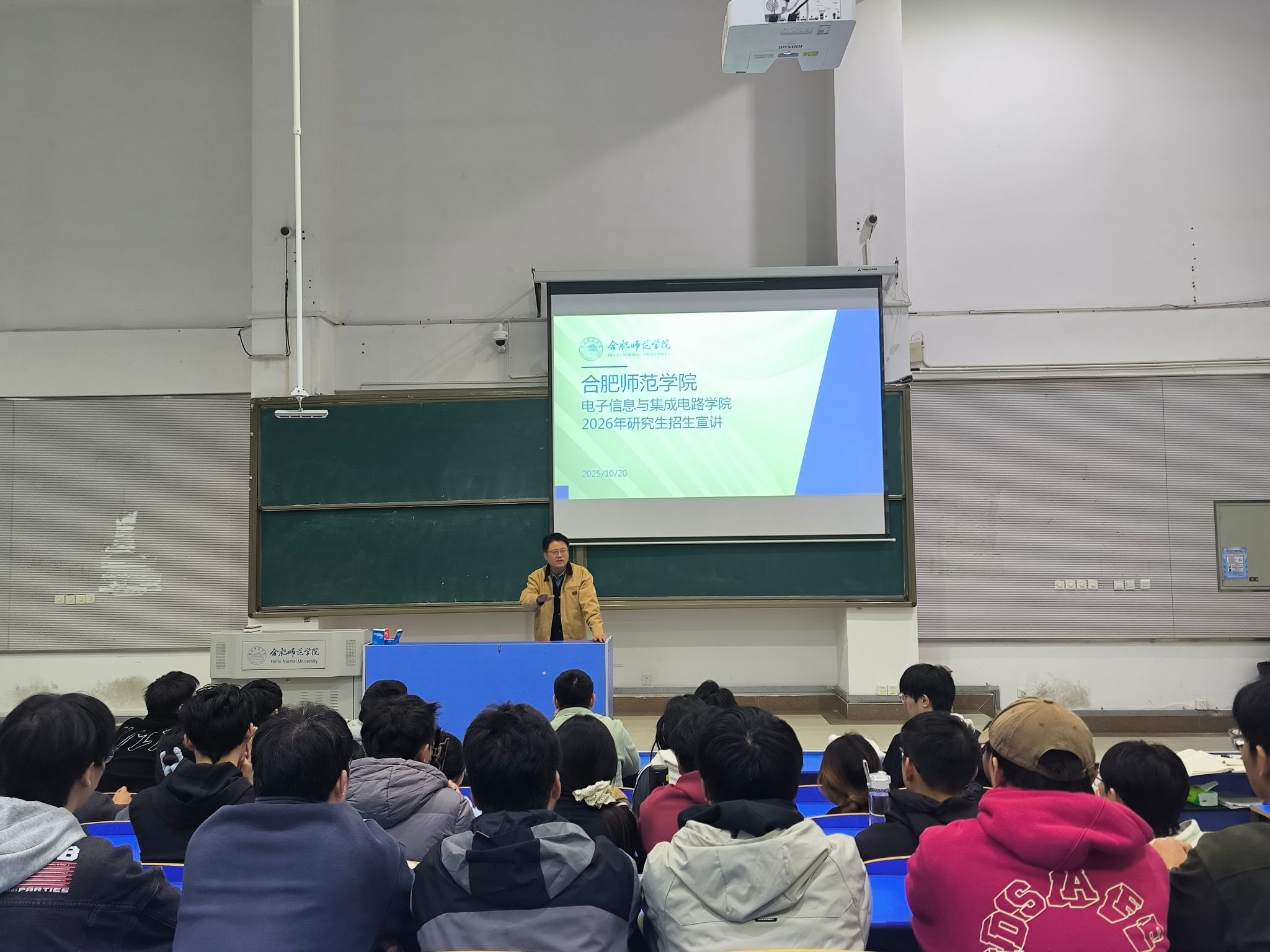 2025年10月20日中午,Beat365亚洲版官网入口在逸夫楼西阶一教室成功举办2026年研究生招生宣讲会。学院副院长孔勐出席并作指导,特邀安徽大学电子信息工程学院蔡勇博士(我院2019届电子信息工程专业毕业生)返校交流。