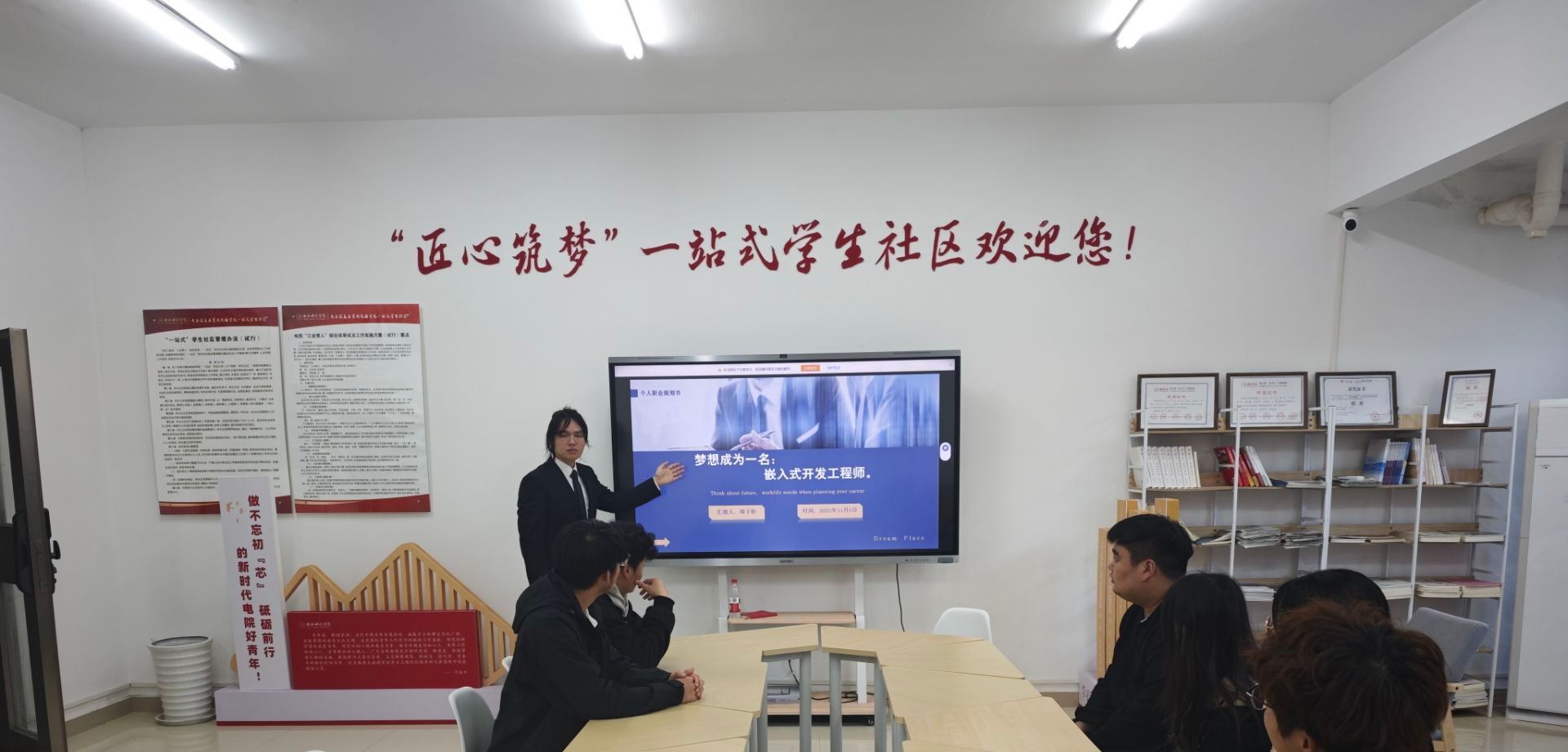 比赛分为成长赛道和就业赛道,选手们围绕自我认知、职业目标、行动计划及评估调整等环节展开阐述。他们结合专业特色与行业趋势,运用数据图表、案例分析等方式展示对目标职业的深刻理解,部分同学还融入了对人工智能、芯片设计等前沿领域的探索,体现出较强的时代性与专业性。评委吴杰老师从目标合理性、实践可行性、表达逻辑性等方面进行点评,既肯定了选手们的创新思维,也针对规划书中存在的不足提出了优化建议。