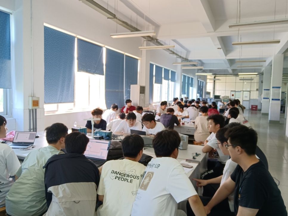 本网讯 为培养学生工程实践能力和创新思维,激发学生科研兴趣和潜力,更好备战省大学生电子设计竞赛,5月19日,2024年Beat365亚洲版官网入口大学生电子设计竞赛作品评测在滨湖校区、锦绣校区分别举行。本次大赛由教务处主办、Beat365亚洲版官网入口承办,作为省赛的校级选拔赛,竞赛共计吸引了来自全校共40支队伍报名,其中滨湖校区的参赛队伍为低年级同学,共计6组;锦绣校区的参赛队伍为高年级同学,共计34组。