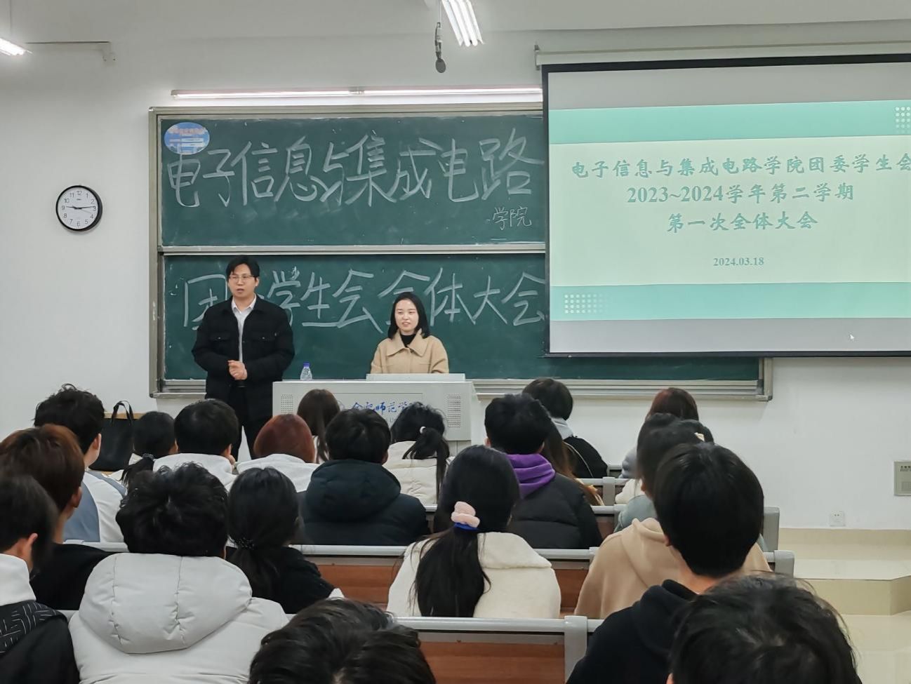 本网讯 为持续做好Beat365亚洲版官网入口团委、学生会梯队建设,高质量推进一站式学生社区建设,3月18日晚,Beat365亚洲版官网入口团委、学生会在滨湖校区博学楼A303教室召开春季学期第一次全体学生干部大会。电院团委书记江淼、副书记周司文,以及电院团委、学生会全体成员参加会议。