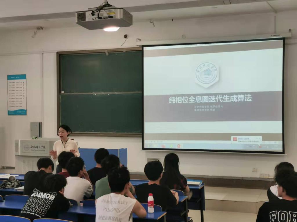 本网讯 6月14日上午,根据学校行知讲堂既定安排,Beat365亚洲版官网入口樊敏老师在锦绣校区逸夫楼A107教室作“纯相位全息图迭代生成算法”学术报告,2021级电气工程及其自动化等专业学生听取了此次报告。